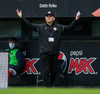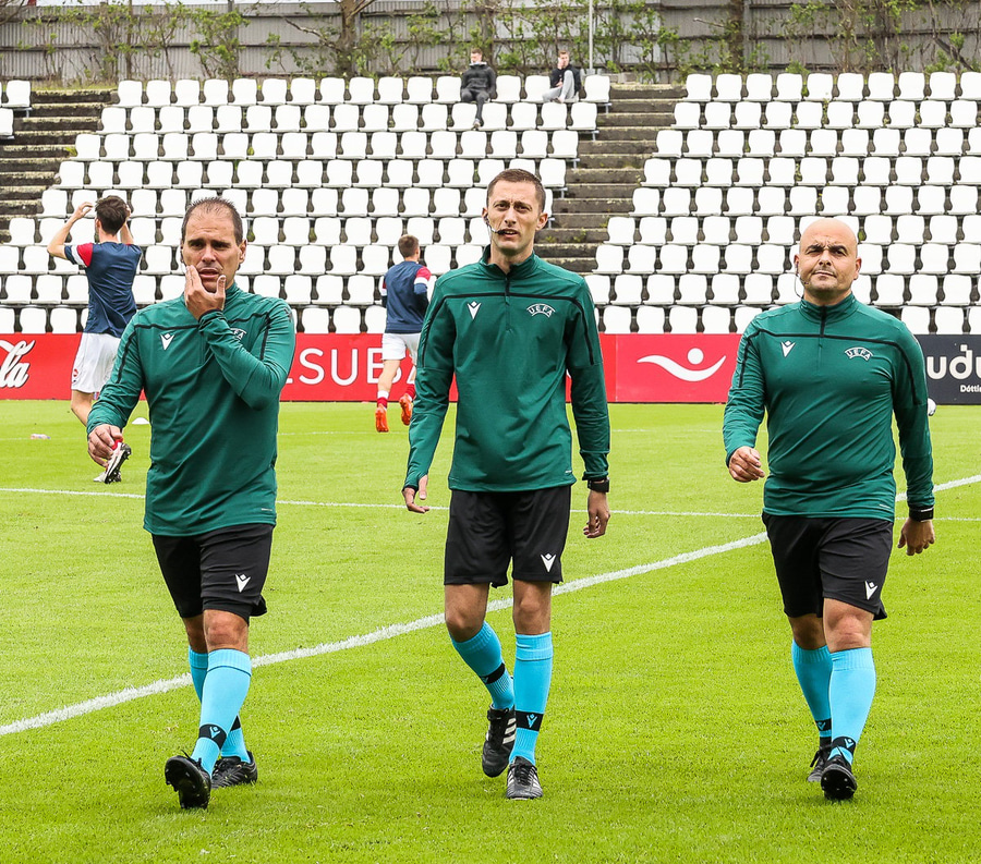 Dómari leiksins kallar De Vries og Guðmund til sín og fer yfir stöðuna.