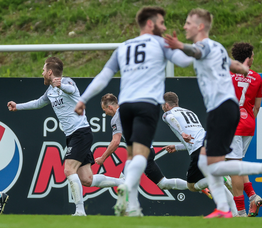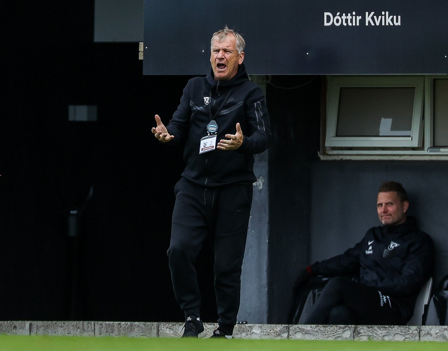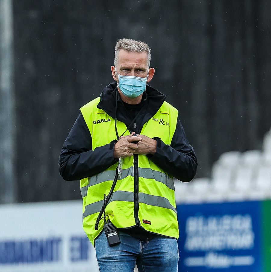 Sligo á aukaspyrnu á vinstri kantinum. Davíð Þór öskrar inn á völlinn inn á sína menn.