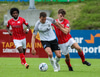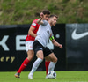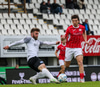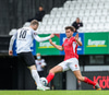 Guðmann reynir eina langa sendingu inn á Matthías en boltinn of langur og Mcnicholas hirðir hann.