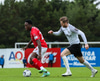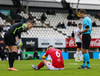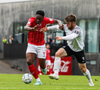 Þórir fer niður í baráttunni við Banks en ekkert er dæmt. Virkaði eins og góður varnarleikur hjá bakverðinum.