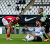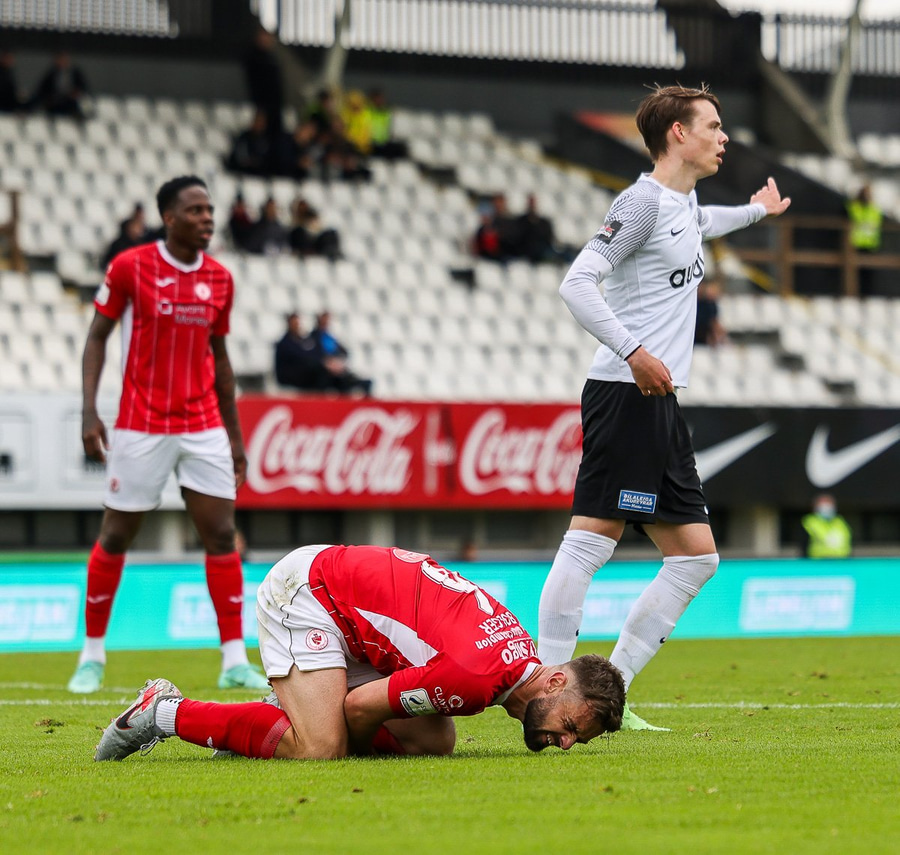 Reynir að fiska vítaspyrnu og hendir sér niður. Pétur snerti hann ekki og dómarinn lyftir upp seinna gula og svo rauðu.