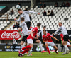 Guðmann skallar þessa fyrirgjöf afturfyrir. Annað horn. Guðmann svekktur með þetta og sparkar í stöngina.