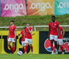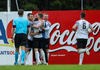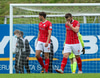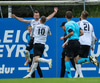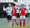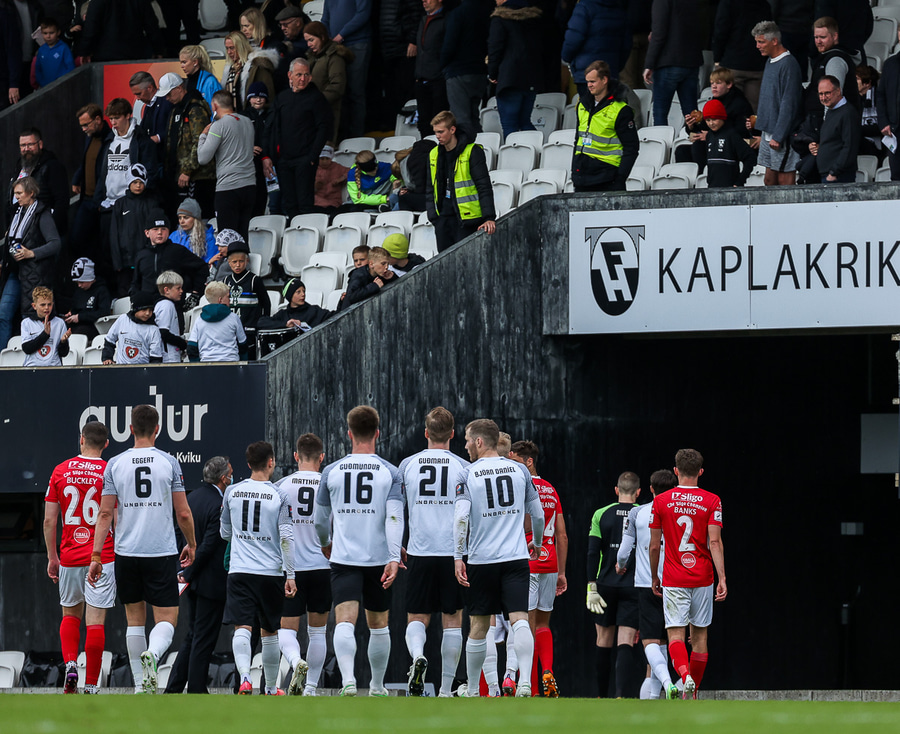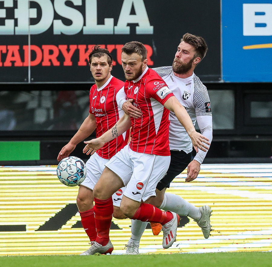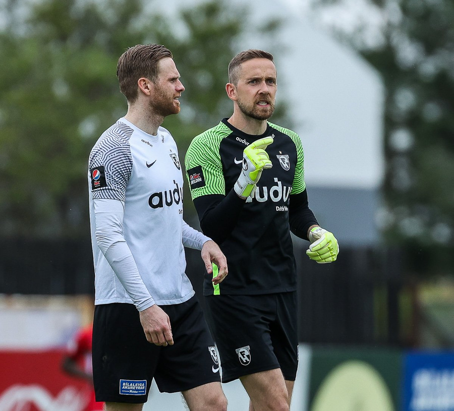 Guðmundi og Cawley lendir aðeins saman eftir að búið var að dæma rangstöðu á Sligo.
