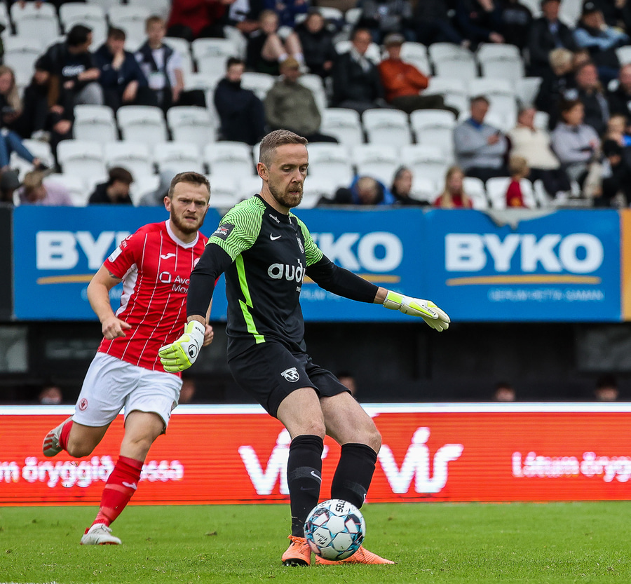 Hörður með fyrirgjöf en hún er of innarlega og Mcnicholas ekki í neinum vandræðum að handsama þennan bolta.