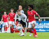 Gibson fær boltann hægra megin í teignum eftir sprett frá Figueira. Gibson er í dauðafæri en skýtur í Parkes og af honum fer boltinn afturfyrir. Þarna sluppu FH-ingar.