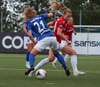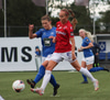 Hildigunnur fær boltann úti hægra meginn og keyrir áfram og fer framhjá Málfríði, reynir að koma boltanum út í teiginn en Sandra kemur út og nær til boltans.