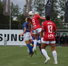 Hár bolti frá Dóru sem Lára Kristín skallar að markinu og úr því varð hálfgert skallatennis áður ren Stjörnukonur komu þessu frá.