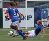 Mary Alie með sendingu inn fyrir á Ídu Marín en boltinn aðeins of langur og Ída, Anna María og Lipkens klessa full harkalega saman. Þær standa þó allar upp og halda áfram.
