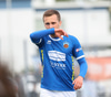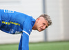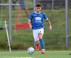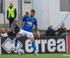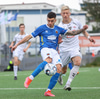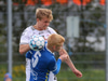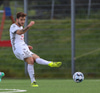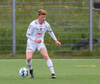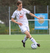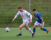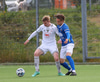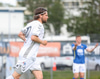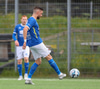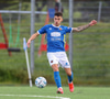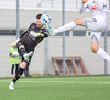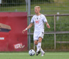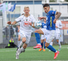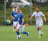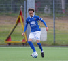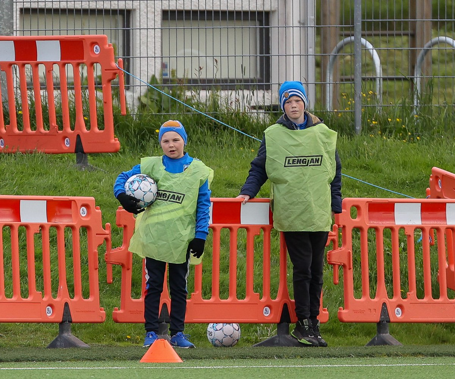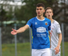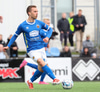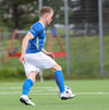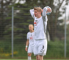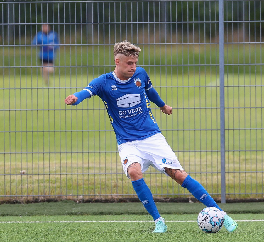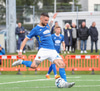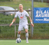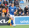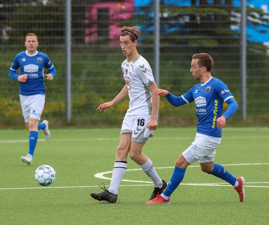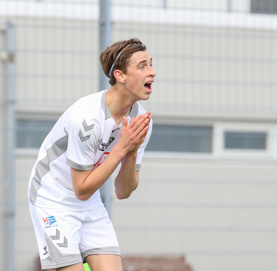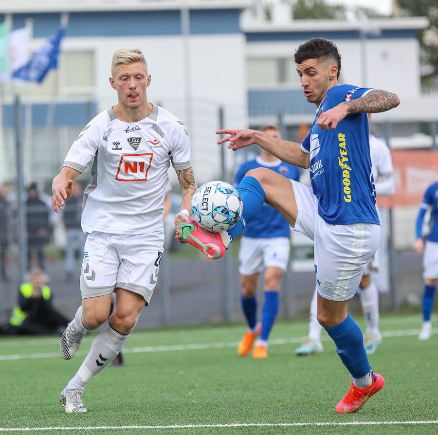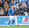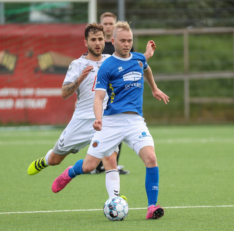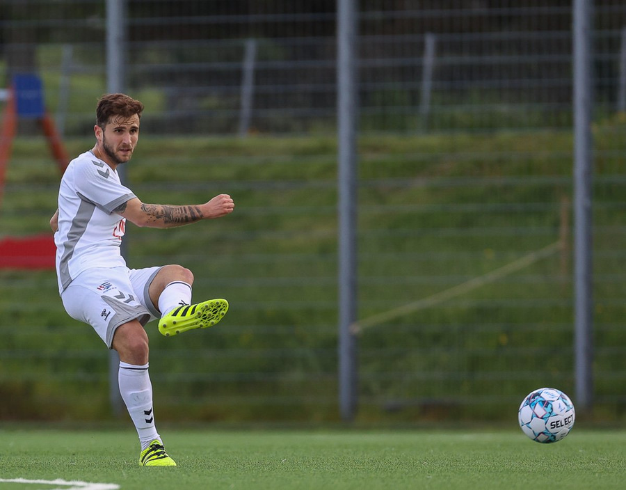 Nökkvi ætlar að senda inn í teig en boltinn ratar ekki lengra en í höfuðið á Alex Frey sem liggur svo eftir.