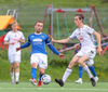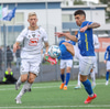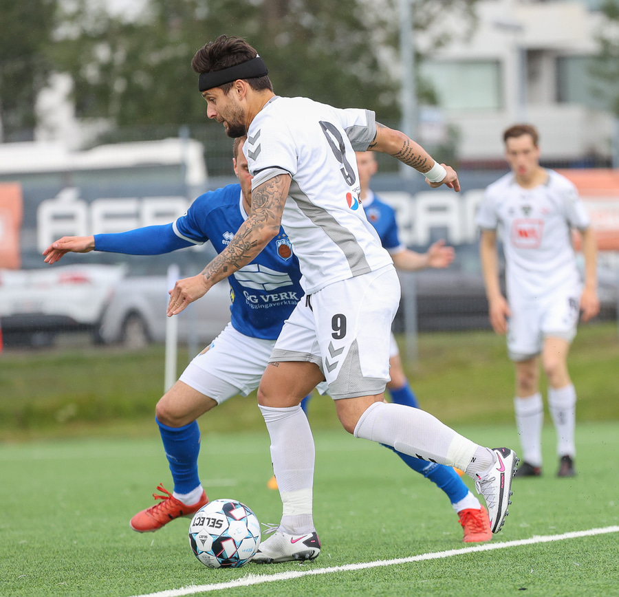 Boltinn er settur inn á Indriða þar sem hann tekur hann niður en snýr baki í markið þannig hann reynir hælspyrnu sem er því miður of laus því þetta hefði verið gullfallegt mark.