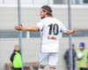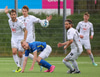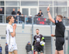Það er kominn töluverður hiti í leikinn eftir að Alex sem er á gulu sparkar boltanum í liggjandi mann til að vinna innkast.