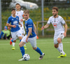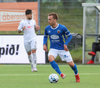 Albert með boltann stutt og fær hann aftur, setur hann út á Tryggva sem hleypir af rétt fyrir utan teig.