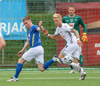 Fred sýnir fína takta hér úti á vinstri kant sendir hann svo á Albert en hann með skotið í varnarmann.