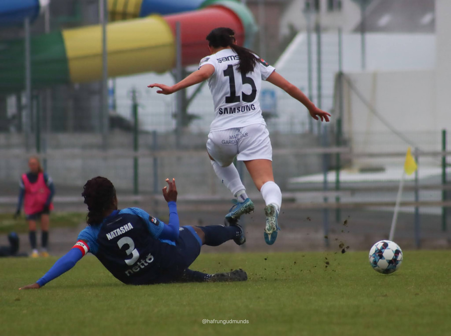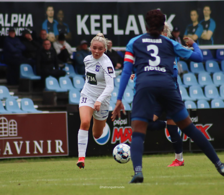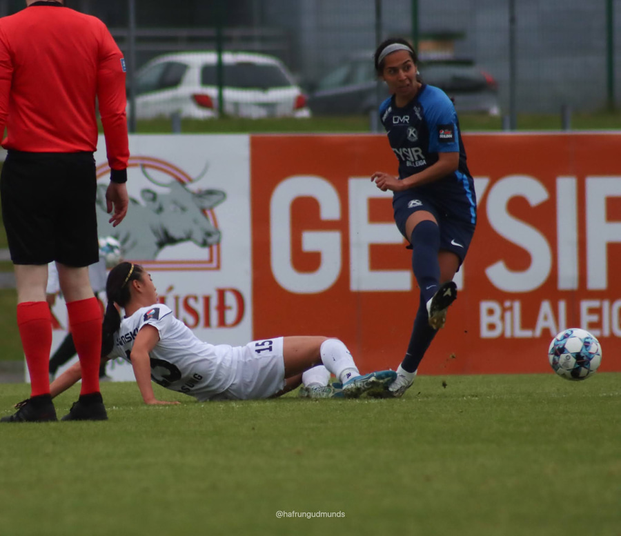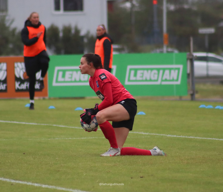 Amelía kemur sér vel fyrir inn í vítateig gestanna og fær boltan eftir flotta fyrirgjöf frá Marín Rún en skot Amelíu er ekki nægilega gott og er nær því að enda í innkasti en fyrir aftan endalínuna