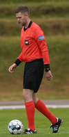 Tekur Sigurð Marinó niður á miðjum vellinum.