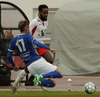 Frábær skyndisókn, löng sending fram á Albert sem á sprettinn í átt að teignum, sendir boltann yfir á Indriða sem setur boltann yfir línuna! 2-0.