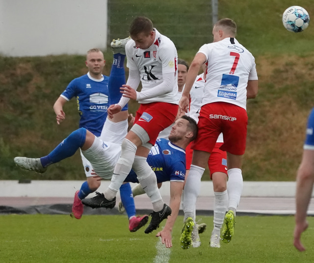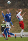 Fyrirgjöf frá Hermanni Helga sem Jóhann Helgi nær og skallar að marki en boltinn rúllar framhjá.