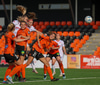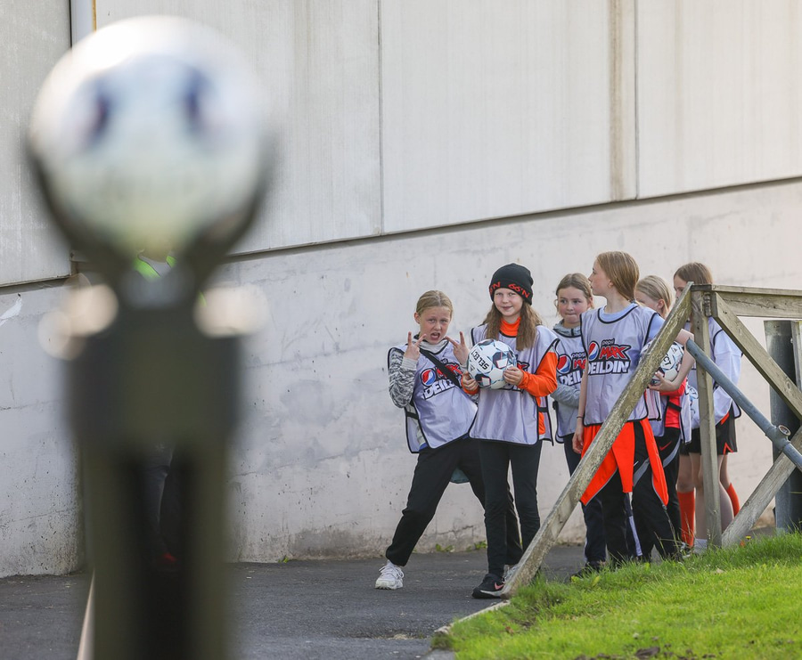 Dóra María er með eitraðar hornspyrnur og þær eru alltaf stórhættulegar. Á hornspyrnu frá vinstri sem Lára Kristín skallar að marki.