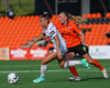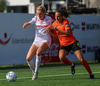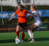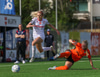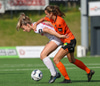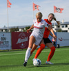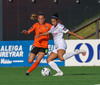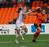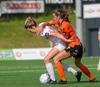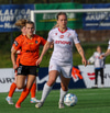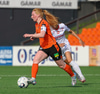 Elísa með sendingu upp völlinn sem fer í hausinn á Kolbrúnu Tinnu og beint fyrir fætur Elínu. Hún er komin einn gegn Tinnu, en setur boltann í stöngina og næstum því í hina stöngina. Ekki fer boltinn inn samt.