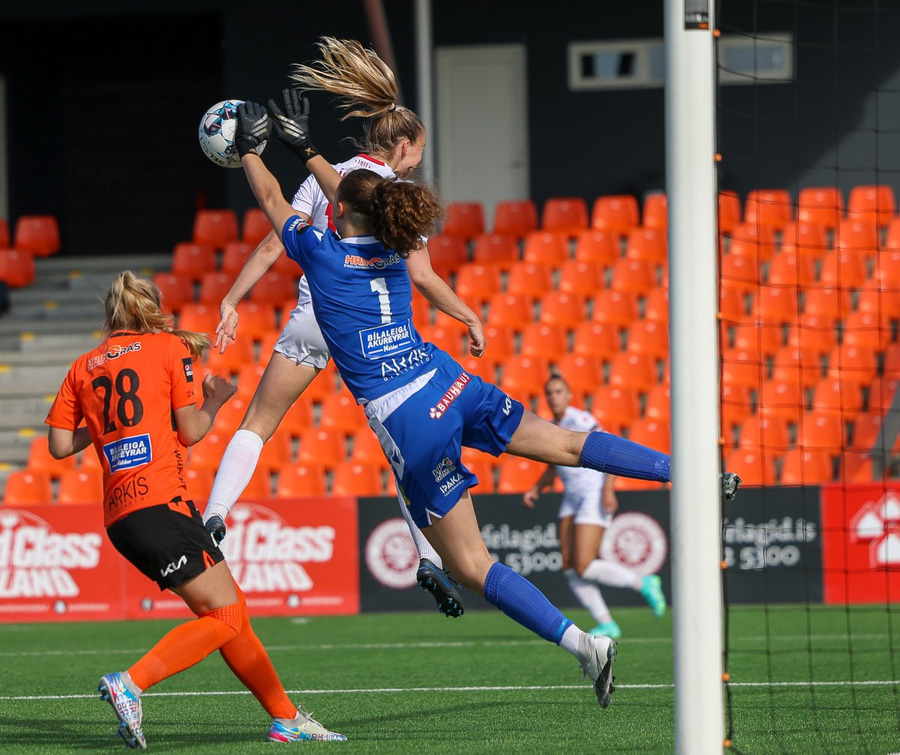 Lára Kristín með skot í varnarmann. Boltinn fellur fyrir Ásdísi sem á skot sem Tinna á að verja. Hún missir boltann hins vegar inn. Þarna geri á kröfu á að Tinna geri betur.