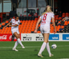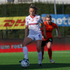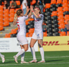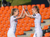 Dóra Laría með fína aukaspyrnu inn á teiginn sem heimaliðið skallar aftur fyrir. Hornspyrna sem Dóra tekur og Mist er rétt kona á réttum stað; skallar boltann í varnarmann og inn.
