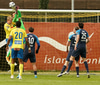 Stórundarlegir markmannstilburðir hjá Sindra! Hallgrímur á hornspyrnu og Sindri ákveður að taka einhverskonar handbolta X í markinu og slær boltann aftur fyrir. Þetta var langt því frá sannfærandi.