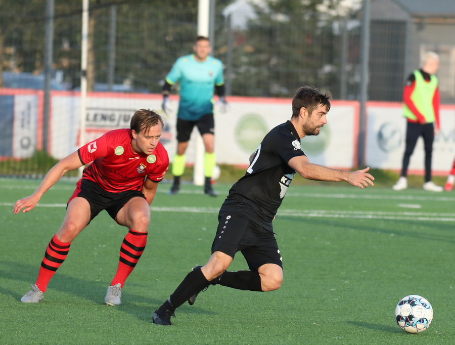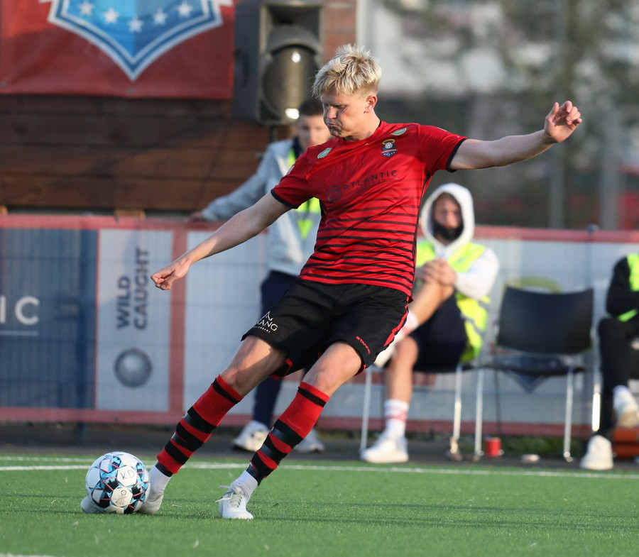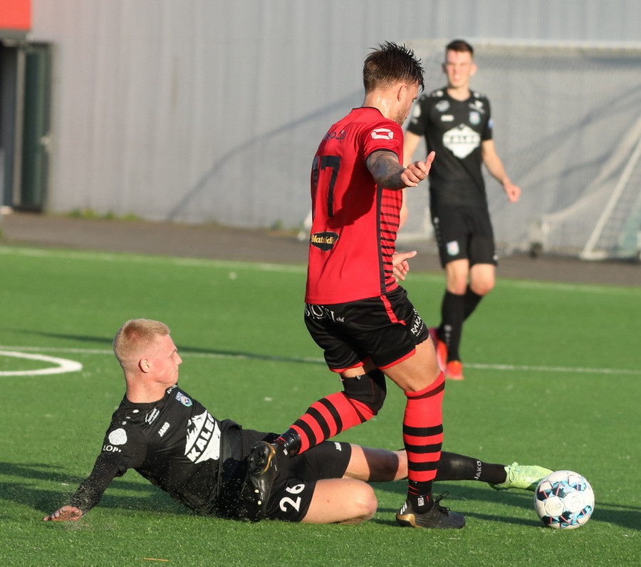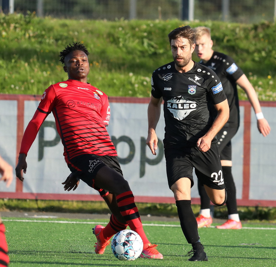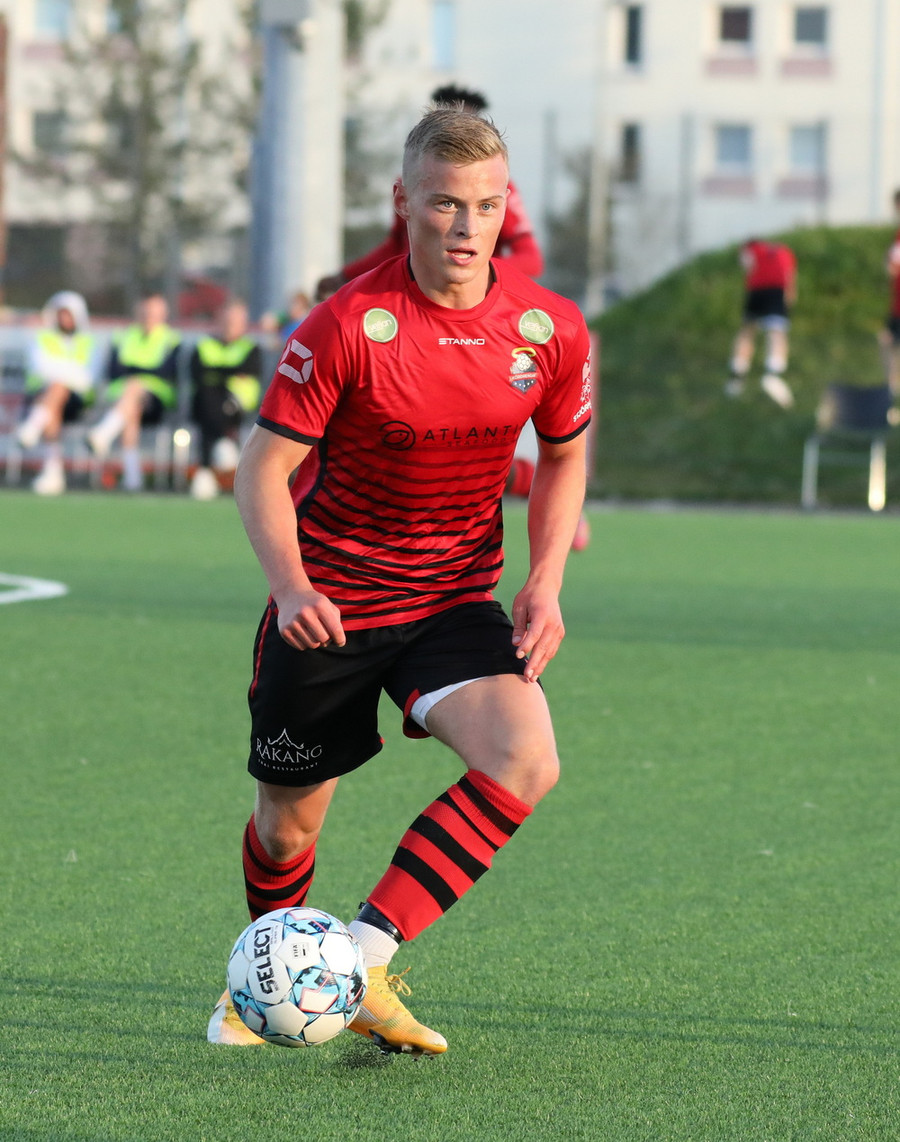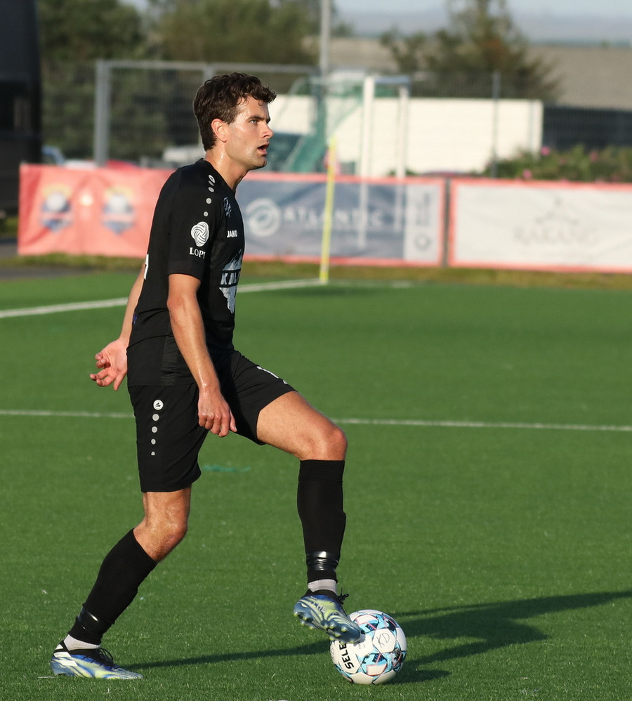 Alveg eins og í markinu kemur Hákon upp hægri kantinn en setur hann núna inn fyrir vorn gestana en Þórir missir boltann frá sér og Tanis tekur hann föstum tökum.
