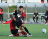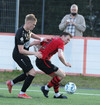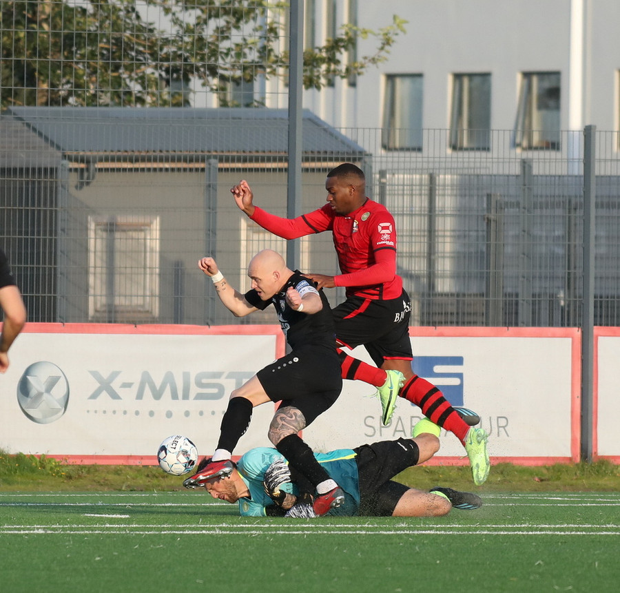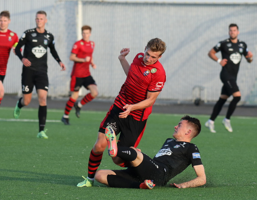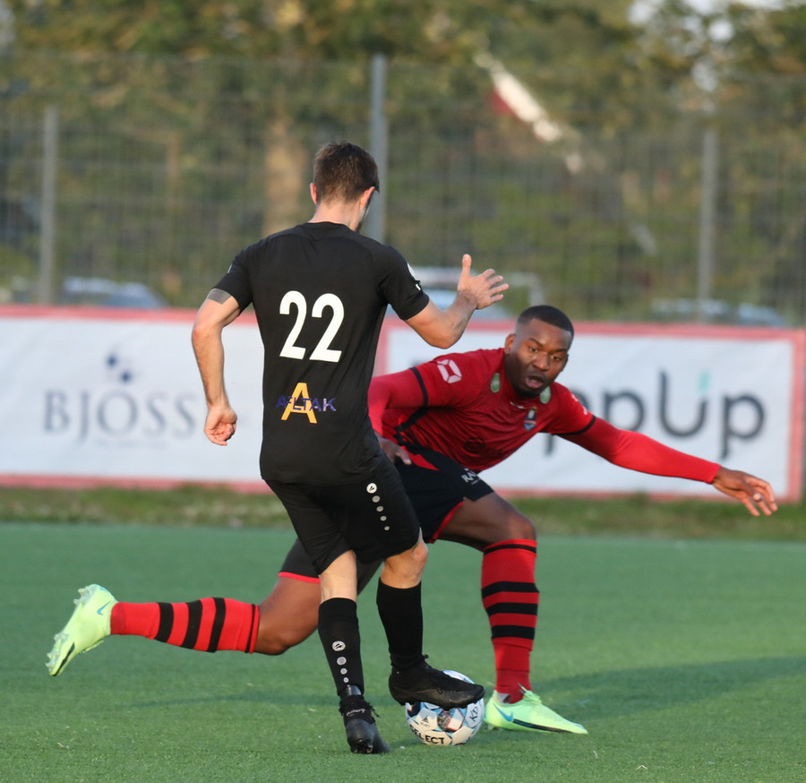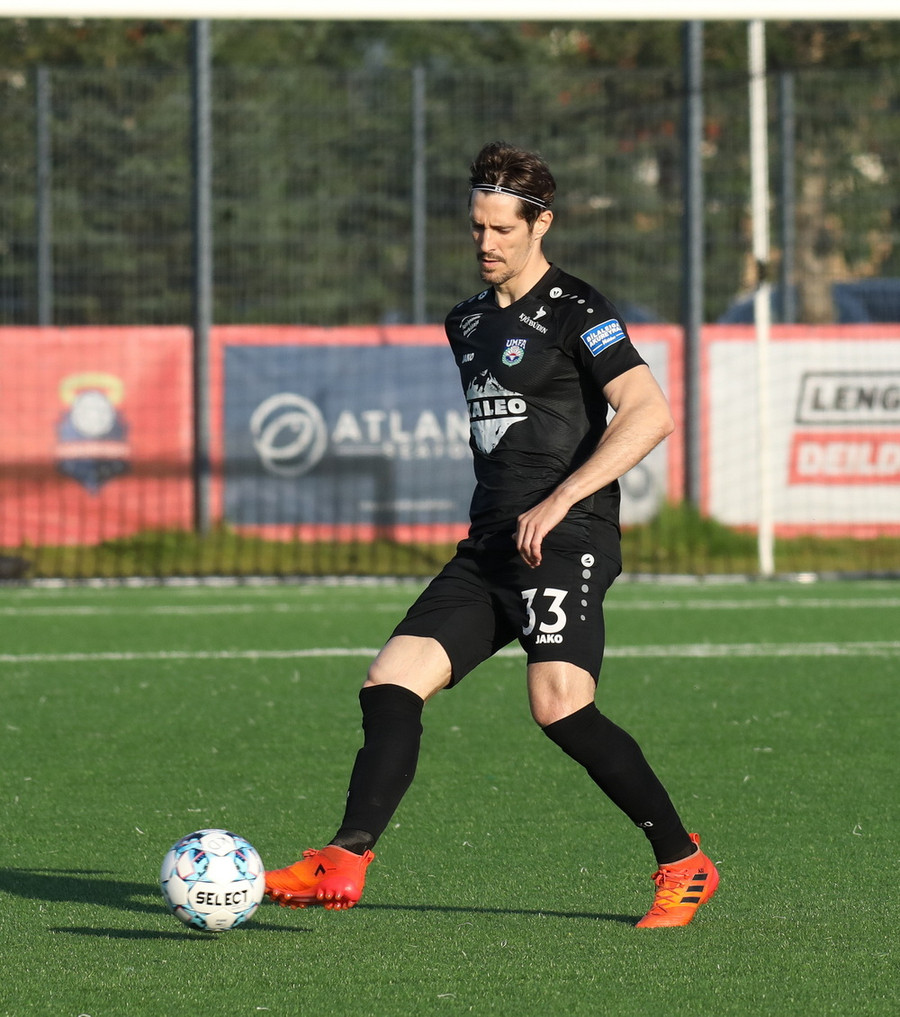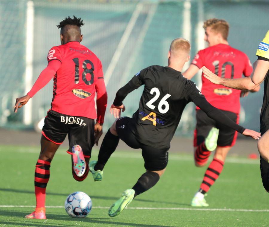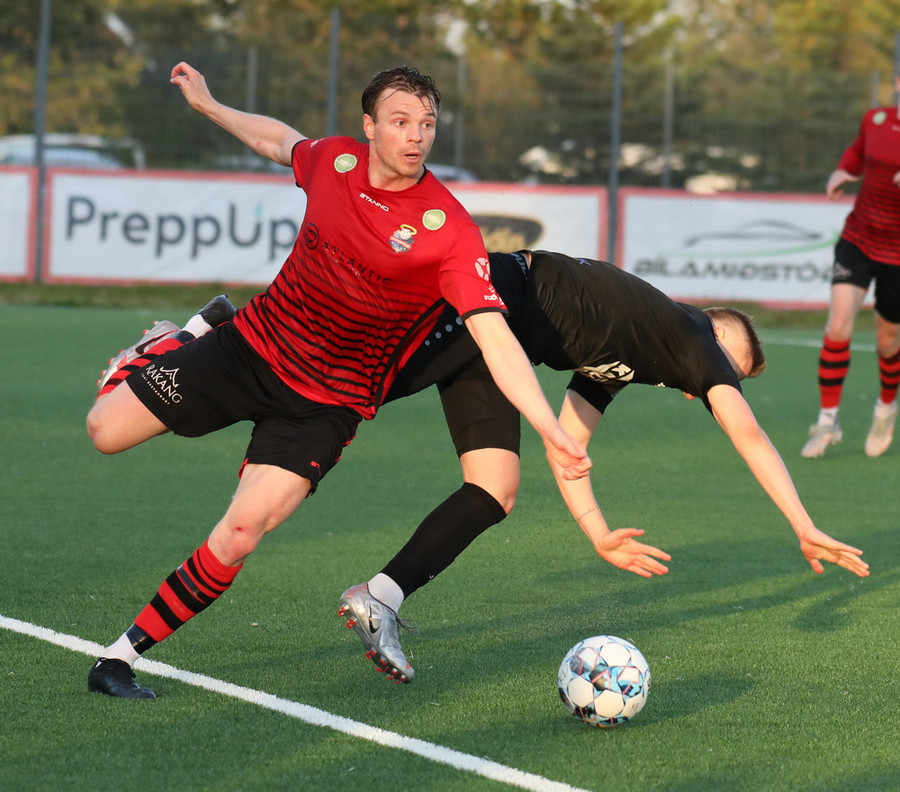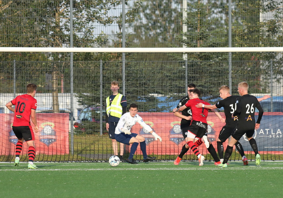 Alveg eins og í markinu kemur Hákon upp hægri kantinn en setur hann núna inn fyrir vorn gestana en Þórir missir boltann frá sér og Tanis tekur hann föstum tökum.