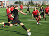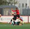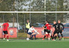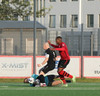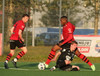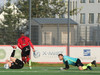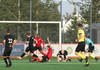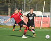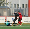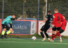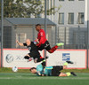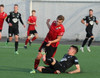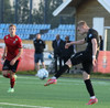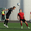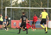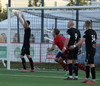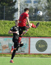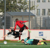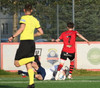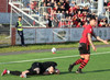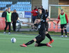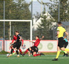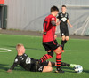 Boltinn færist á Axel Frey fyrir utan teig sem tekur hann viðstöðulaus á lofti en skotið aðeins og laust og Tanis nær að handsama knöttinn.