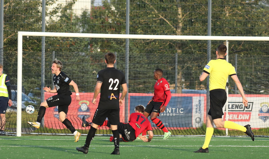 Kristófer Óskar klárar eftir að Alexander Pedersen virtist hafa tekið niður leikmann Aftureldingar en á meðan aðrir báðu um víti þá var Kristófer vakandi og kláraði í opið netið.