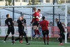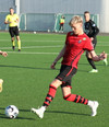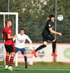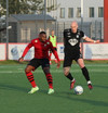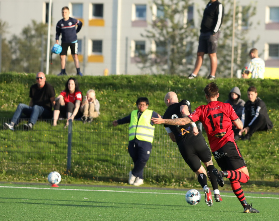 Skemmtileg tilþrif frá Davíð Þór sem kemur með hælsendingu upp kantinn en sókninn rennur út í sandinn.