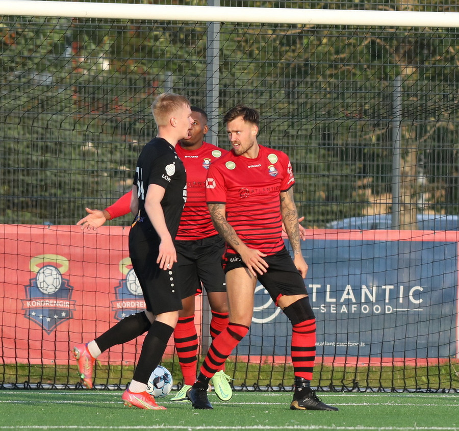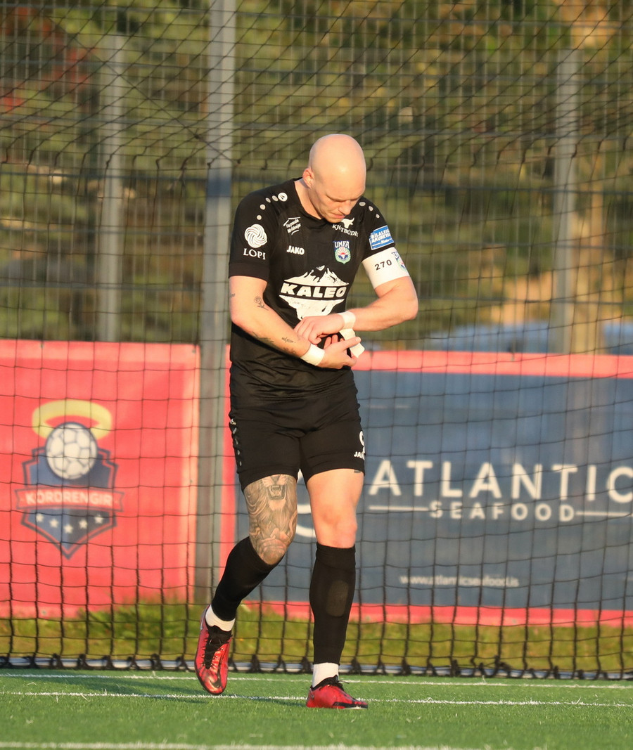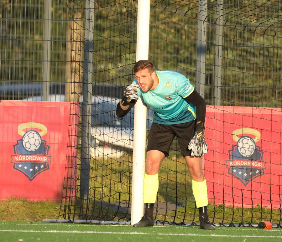 Kórdrengir spyrja ekki um það. Hornspyrnan kemur fyrir og Tanis lúðrar honum frá en fær mann keyrandi í sig. Axel tekur boltann með sporðdreka sparki og þetta var svo snyrtilegt að það verður bara að leyfa þetta.