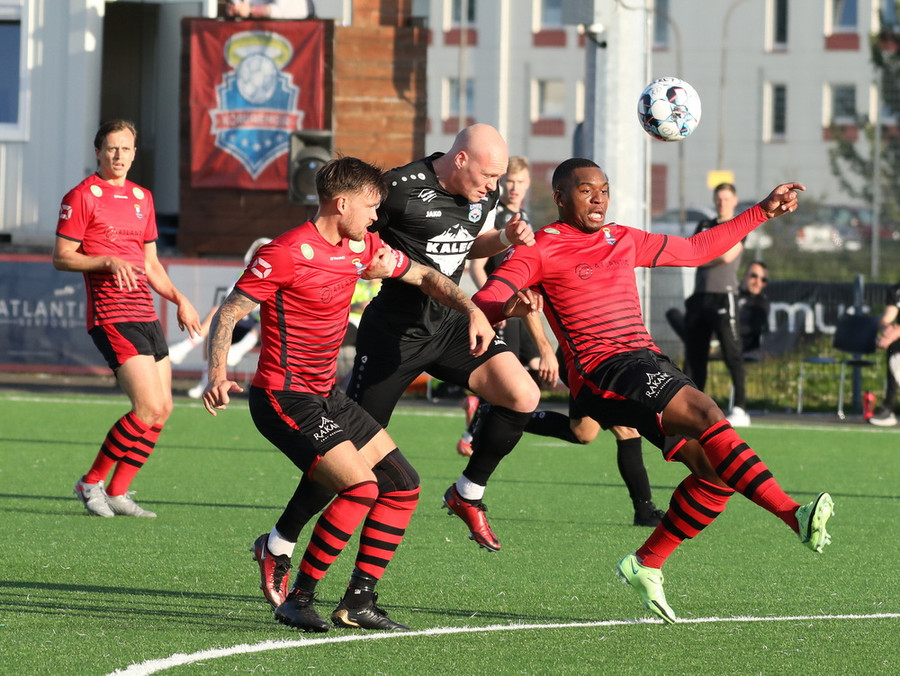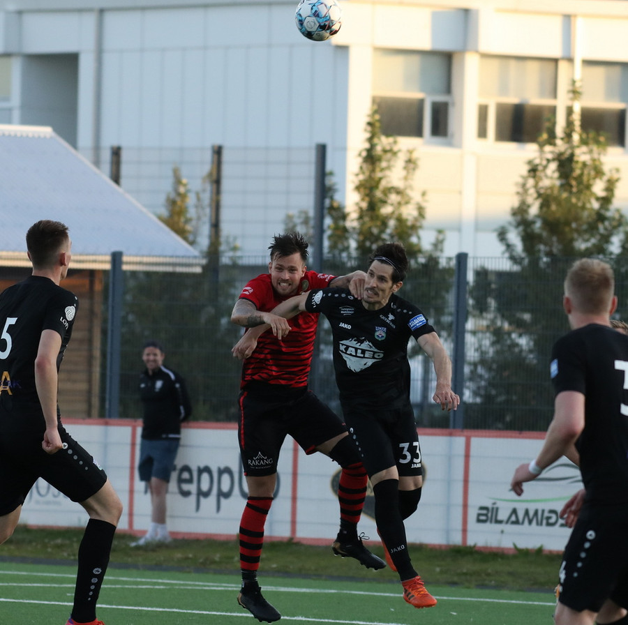 Þá eru menn aftur komnir inn á völlinn og seinni hálfleikur hafinn. Nú er það Kórdrengir sem byrjar með boltann og Kaleo hljómar
