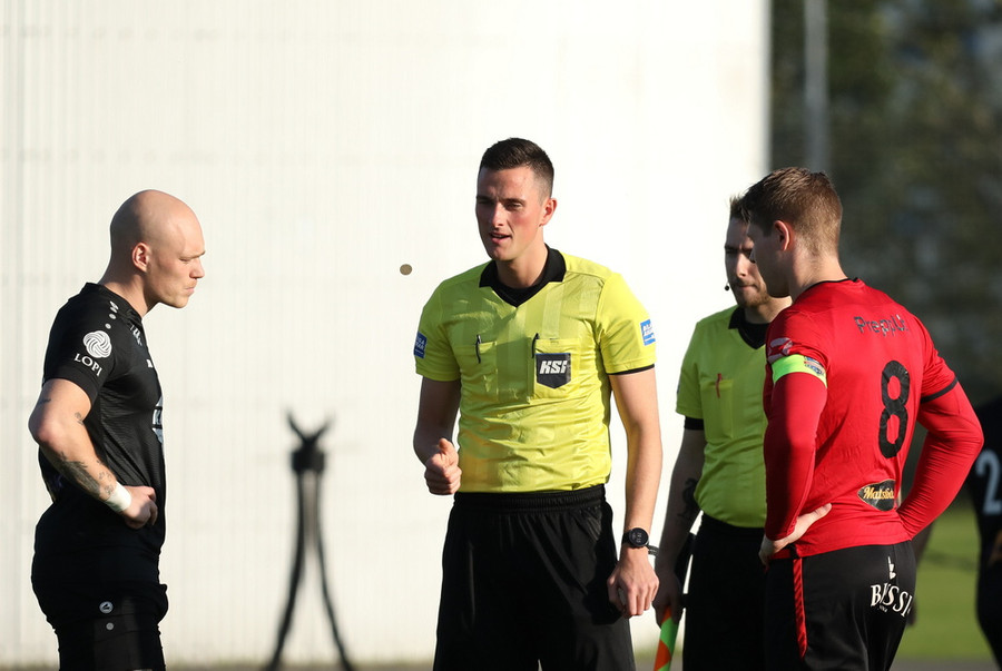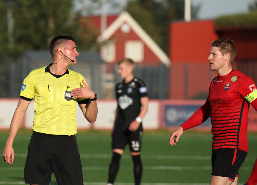 Eftir það fer varnarmaður full seint í Kristófer og hann lá eftir í smá stund og það var beðið um spjöld í allskonar litum en ekkert slíkt fór á loft.
