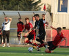 Arnór gauti setur boltann í hættusvæðið þar sem Pedro er hársbreydd frá því að ná honum en Alexander er á undan.