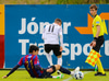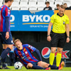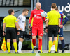 Hörður Ingi liggur niðri í teignum og þarf aðhlynningu en mér sýnist vera í lagi með kappann, virtist vera höfuðhögg!