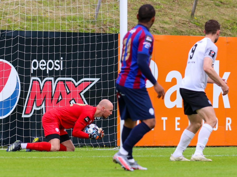 Máni Austmann fær góða sendingu inn í teig, Máni kemst upp að endamörkum og renndi boltanum í átt að Sólon Breka sem er einn í teignum en Guðmann komst fyrir það!