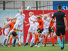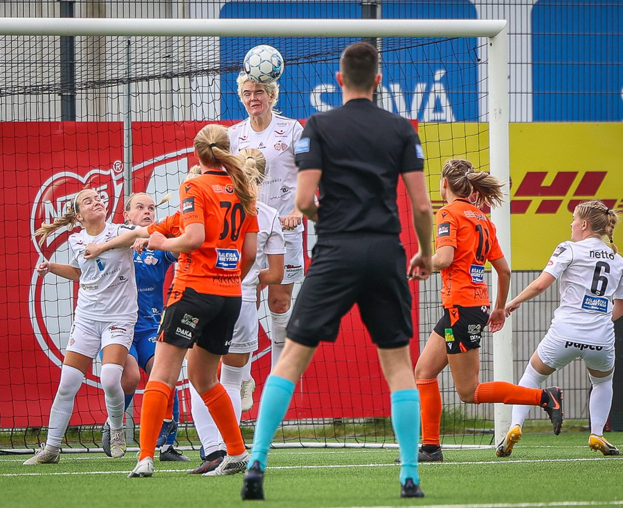 Helena var allt í einu á einum sjó í teignum en Harpa kom út á móti henni og varði. Strax í kjölfarið fékk Helena skallafæri en hitti boltann illa og Harpa hirti hann.