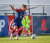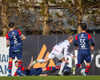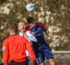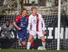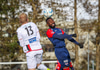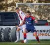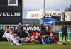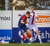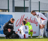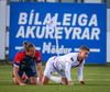 Dómarinn stöðvar leikinn og er fljótur að kalla inn sjúkrateymið eftir að Sölvi og Nacho skalla saman í teginum.