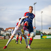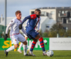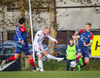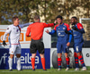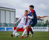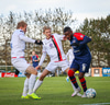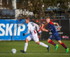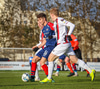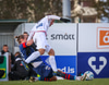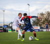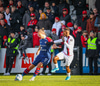 Oafo-Badu fer í svaka tæklingu á Nicolaj sem dómarinn dæmir löglega en hann liggur í grasinu og þarf aðhlynningu.