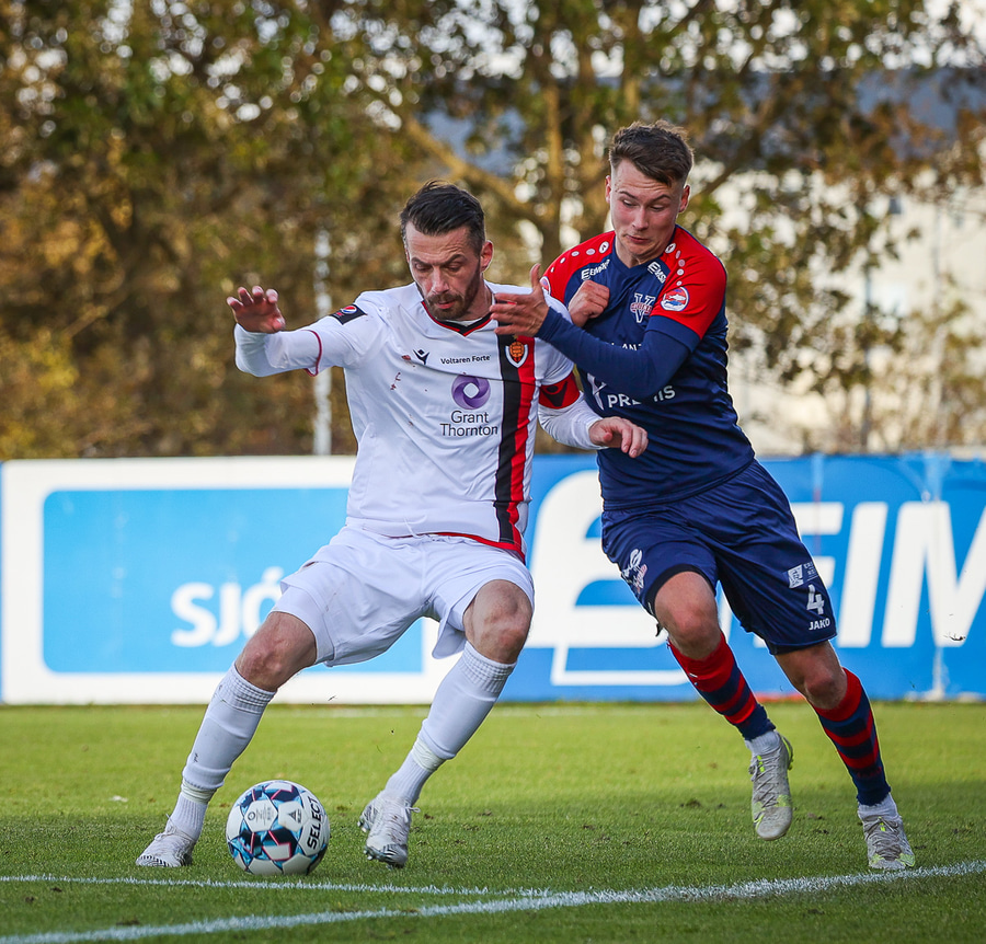 Seinni spyrnan var betri en Víkingar skalla frá og sparka honum svo í innkast.