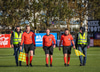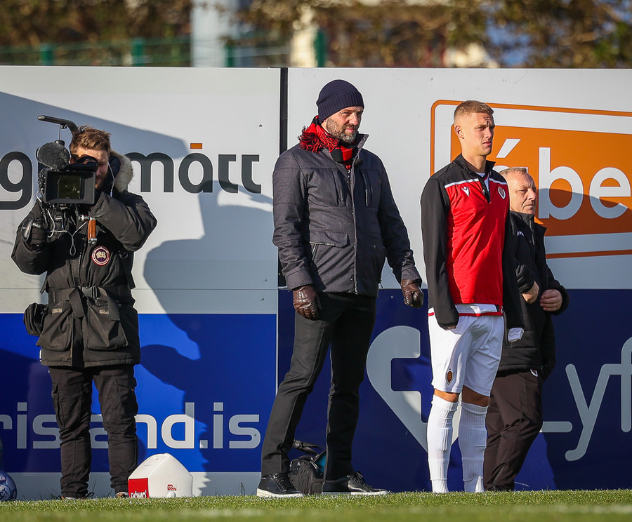 Það er harka í leiknum á fyrstu mínútunum, nú þegar tvisvar búið að sparka bolatnum útaf til að athuga hvort menn séu í lagi.