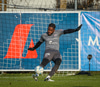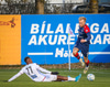Viktor tekur spyrnuna en boltinn ratar beint á Muhammad sem handsamar knöttinn auðveldlega.