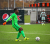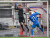 Fabio Silva fær háa sendingu inn á teig og reynir bakfalls-spyrnu sem er góð en Jökull gerir sig bara stóran og fær hann í bringuna!!