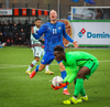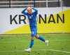 Kristall Máni dansar framhjá tveimur varnarmönnum og kemst inn á teig og á fast skot niðri í fjær en Celton tekur eina vörslu með löppunum, David De Gea style...