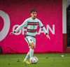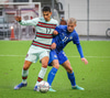 Kristall með sendingu á Sævar sem nær að taka boltann með sér inn á teig og nær að koma skoti í átt að marki en Eduardo Quaresma rennir sér fyrir þetta og boltinn endar í hornspyrnu....