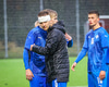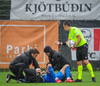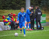 Ísak Óli þarf að fá aðhlynningu þar sem hann gefur fengið lítin skurð í andlitið og það blæðir úr andlitinu hans...