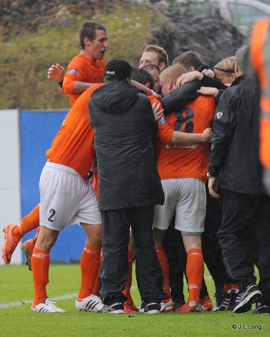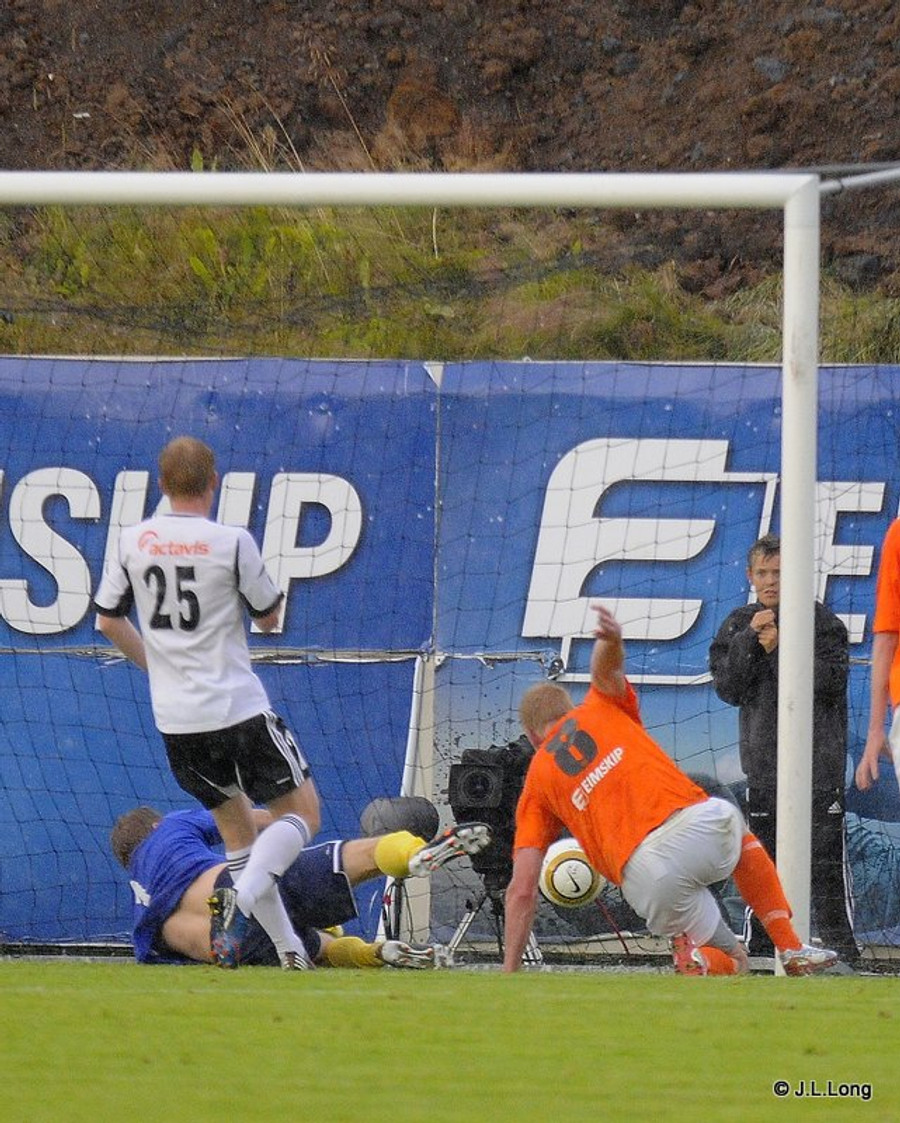 Hólmar skorar af stuttu færi og minnkar muninn. Of lítið og of seint. Atli Guðnason með sendinguna.