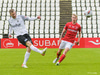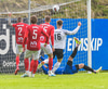Valsmenn eru í rauðum treyjum og hvítum stuttbuxum.