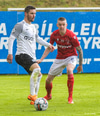 Davíð Snær með mislukkaða sendingu við vítateig FH og Tryggvi kemst í boltann. Tryggvi reynir skot en það fer framhjá marki FH.